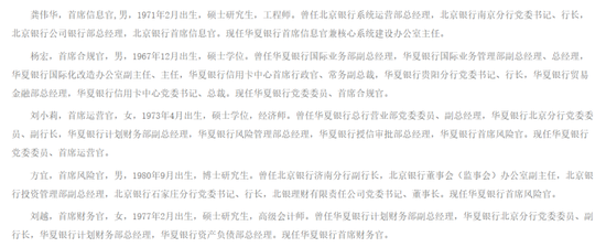 据此,华夏银行组成“五大首席”的阵容——龚伟华担任首席信息官,杨宏为首席合规官,刘小莉担任首席运营官,方宜就任首席风险官,刘越则是首席财务官,共同指引华夏银行合规风控、战略走向等方面的问题。