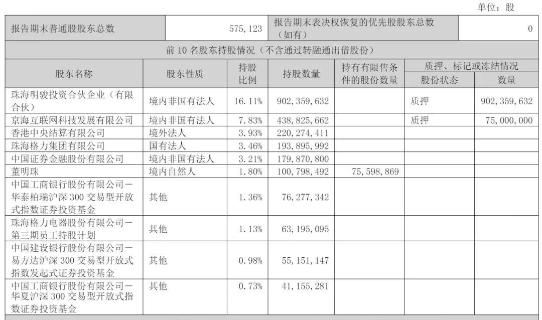 珠海明骏是高瓴旗下基金,截至2025年9月30日,高瓴旗下珠海明骏投资合伙企业(有限合伙)持股16.11%,京海互联网科技发展有限公司持股为7.83%,香港中央结算有限公司持股为3.93%,珠海格力集团有限公司持股为3.46%,中国证券金融股份有限公司持股为3.21%;