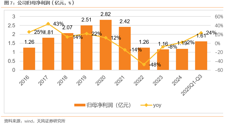 利润趋势:与营收趋势类似(20年之前高增,21-23年下滑,24年起重回增长),但波动较收入更大,主因为毛利率有波动。