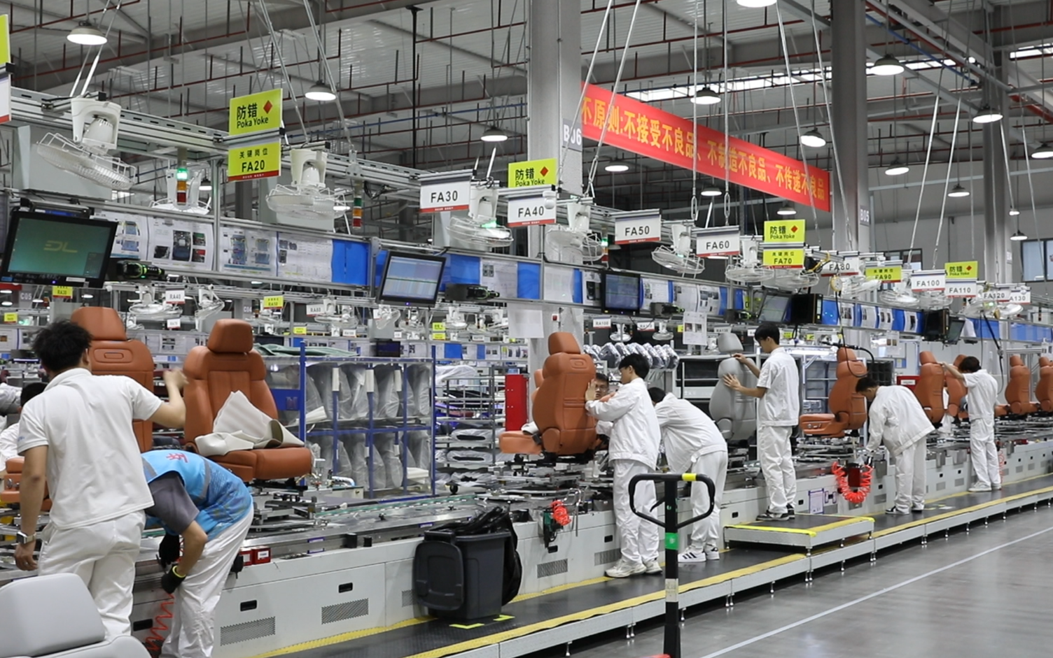 佛吉亚汽车部件车间内,设备调试与人员配置工作正有序推进,企业正抓紧筹备生产、全力对接订单。企业计划年内落地两个新项目,预计年产值可达5亿元。该工厂于去年9月搬迁至小漠街道启航智造园,距离深汕比亚迪二期总装车间仅2公里,有效降低了运营成本。此外,凭借标准化厂房和合理布局,产能提升40%,具备年产42万车付座椅的生产能力。