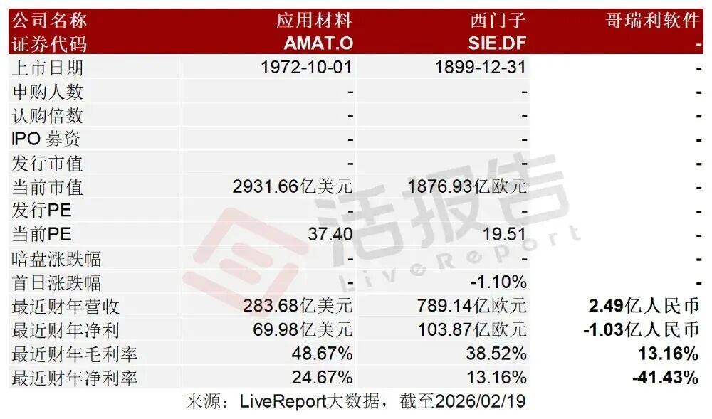 同行业IPO可比公司:应用材料(AMAT.O)、西门子(SIE.DF)