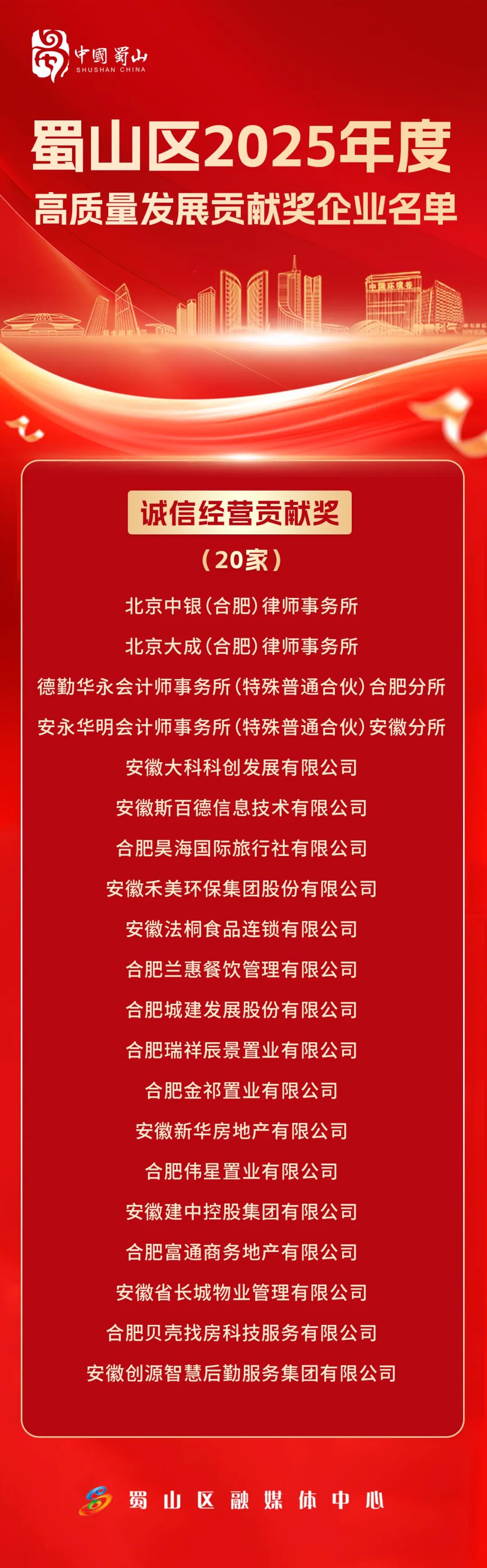 名单公布!蜀山区这些企业登上“光荣榜”!