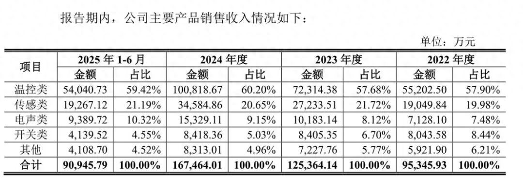 温控类产品为天博智能最主要的收入来源,各期产品收入占比主营业务收入的57.90%、57.68%、60.20%及59.42%,是公司增长最强劲的业务。