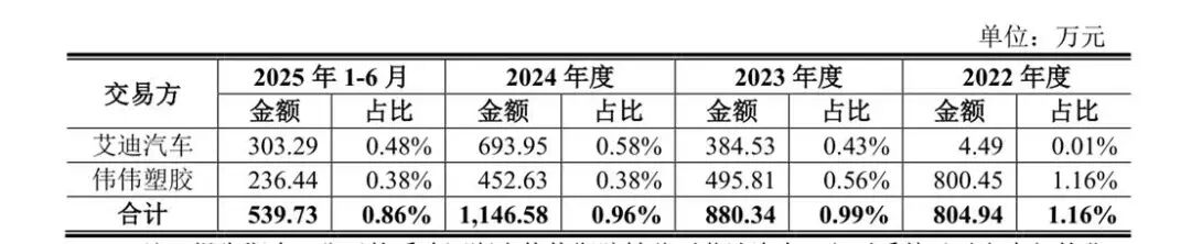 艾迪汽车由吕新民的弟弟吕建国担任经理,吕建国的儿子吕世伟持有 100%;伟伟塑胶由吕建国的配偶王平军持有100%。