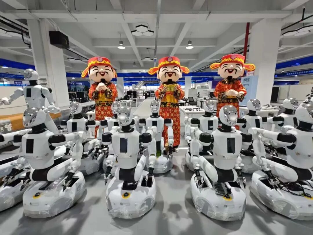 瞧,天奇自动化工程股份有限公司的人形机器人已经整整齐齐“到岗上班”啦!