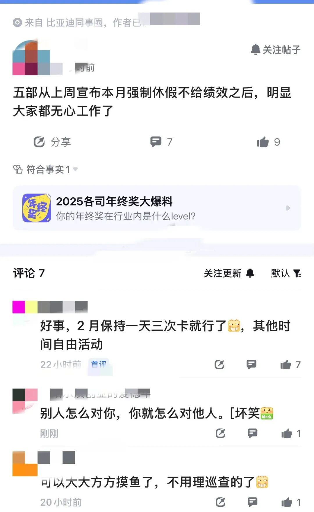 面对这样的困境,降本增效成了比亚迪的必然选择,而下调绩效、推行强制休假,就是其降本措施的一部分。
