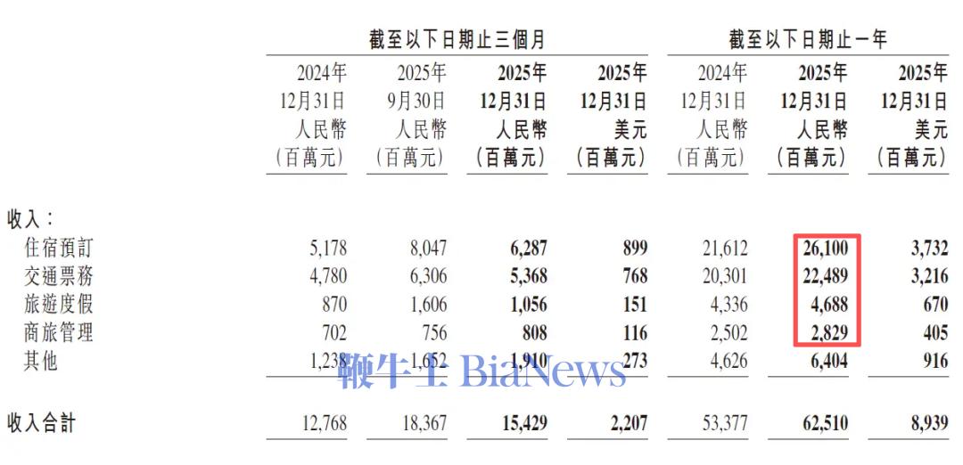 财报还特别强调入境游带来的增量。2025年国际OTA平台总预订同比增长约60%,全年服务入境旅客约2000万人次。
