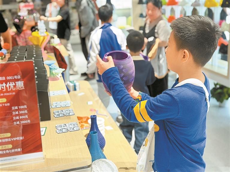 全球每售出的10台消费级3D打印机中,有9台来自中国品牌。图为深圳市民体验3D打印技术。