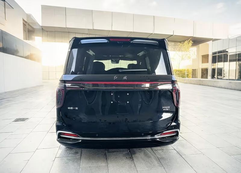 新款红旗HQ9 PHEV整体设计上基本延续在售车型,前脸依然搭载大尺寸直瀑式格栅。车身尺寸方面,新车长宽高分别为5222/2005/1935mm,轴距为3200mm。尾部方面,新车搭载贯穿设计的尾灯组,点亮后具备很高的辨识度。