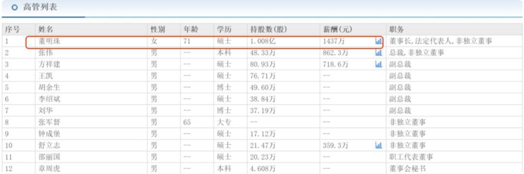 自1990年进入格力至今,董明珠已经在格力工作了36年,虽然不是格力的创始人,却为格力立下了汗马功劳,2012年董明珠被任命为格力董事长同时兼任总裁,成为一名名副其实的“打工皇帝”。和方洪波等职业经理人不同,董明珠不仅仅是格力的职业经理人,还是格力最大自然人股东,也是第六大股东,目前董明珠持格力1.00798亿股,持股比例约1.80%。
