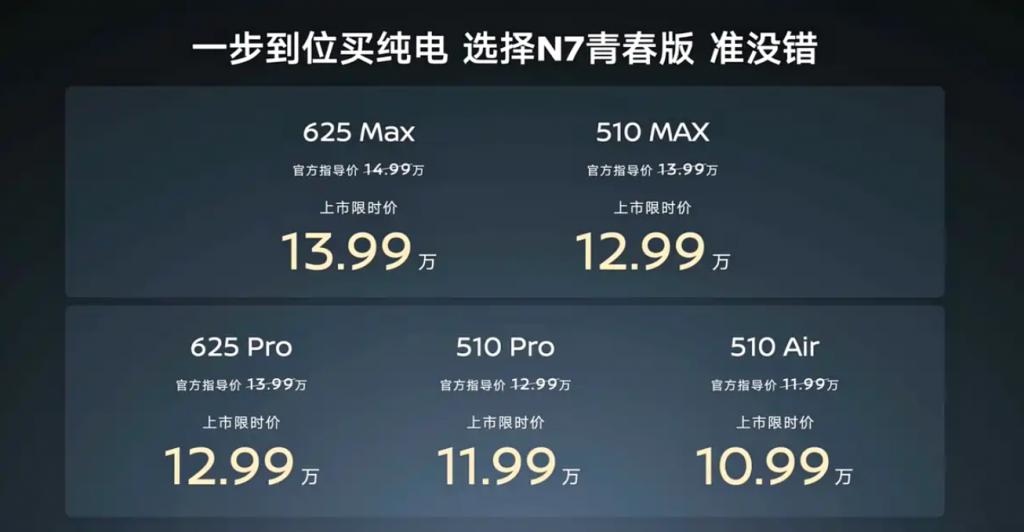 近日,东风日产 N7 青春版正式上市,新车一共推出 5 款配置车型,官方指导价为 11.99-14.99 万元,同时还给出了更加亲民的 10.99-13.99 万元上市限时价,性价比进一步提升。