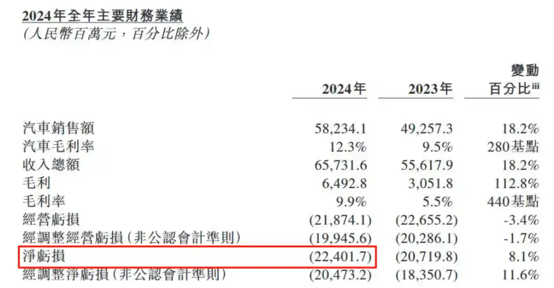 时间拉回2024年,那时的蔚来在新能源市场过得并不轻松。主力车型月交付量连续跌破万辆门槛,叠加持续高企的研发与换电网络投入,财务报表上的亏损数字不断扩大。2024全年,蔚来净亏损高达224亿元,同比增长8.1%,这意味着2024年卖了22.19万辆车的蔚来,平均每卖一辆亏损10万元。