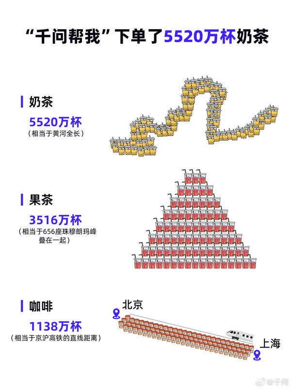 千问官方数据显示,春节期间,千问帮大家“一句话下单”近2亿次。相比传统点选式下单,“千问帮我”仅需2-3轮对话即可完成,便捷的操作,让超过400万长辈步入了AI生活。此外,这个春节,千问还帮大家点了5520万杯奶茶、3516万杯果茶……