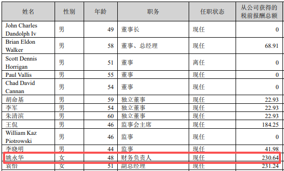 2025年7月29日,该公司发布的公告显示,基于公司发展需要并综合考虑各方面因素,经董事会提名委员会审议通过,董事会同意解聘姚永华女士的财务负责人职务,解聘后姚永华女士将不再担任公司及公司控股子公司任何职务。详见《突发!年薪230万的CFO被解聘!》。
