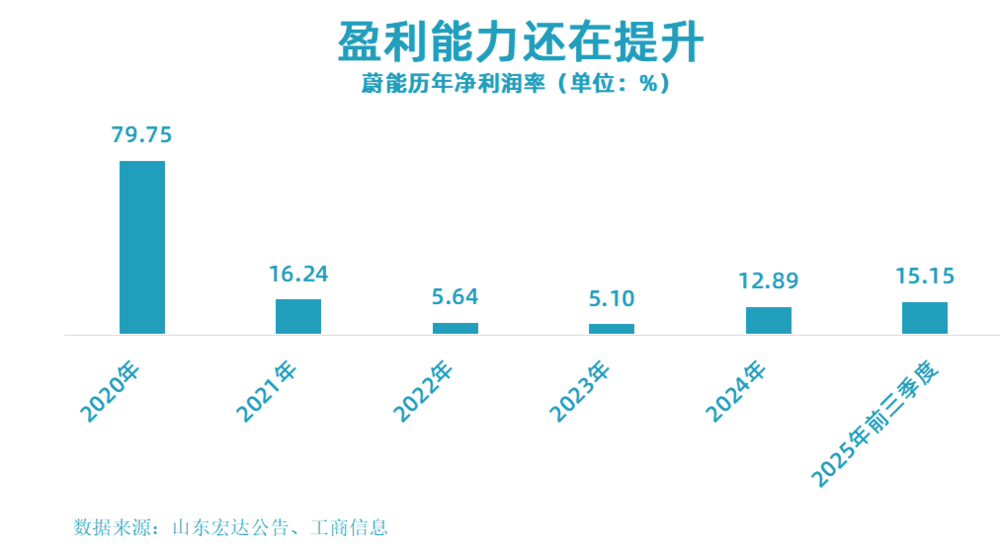 而且,蔚能的盈利水平还在提升。到2025年三季度,其净利润率达到了15.15%。