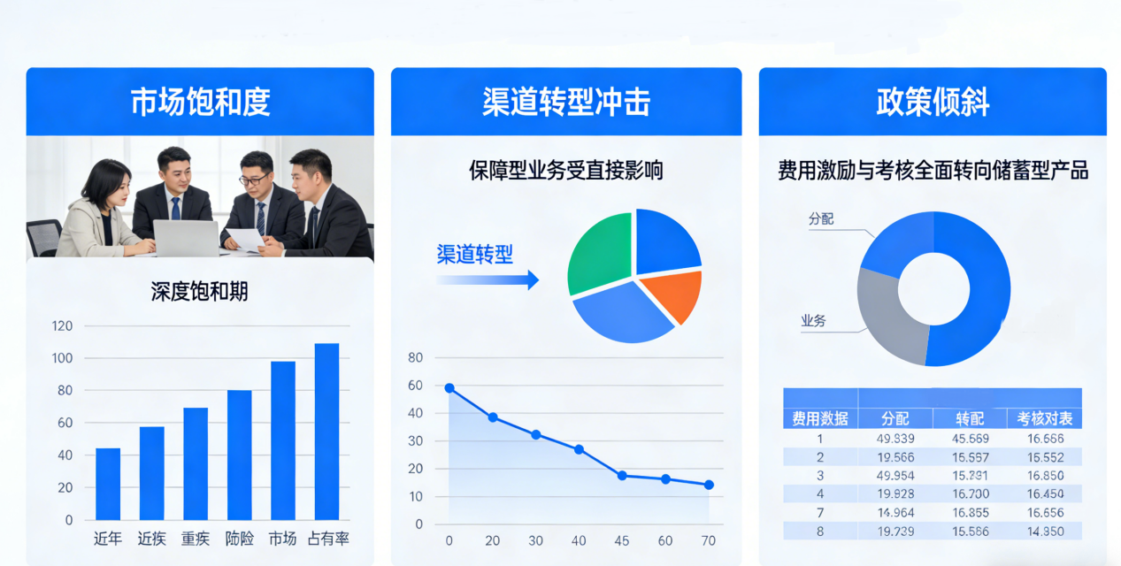 其次,渠道转型对保障型业务形成了直接冲击。保障型产品尤其是长期重疾险,高度依赖个人代理人渠道的面对面讲解与需求挖掘,而代理人数量从高峰时期的900多万人降至目前的不足300万人,队伍规模的收缩直接导致保障型产品的触达能力大幅下降。