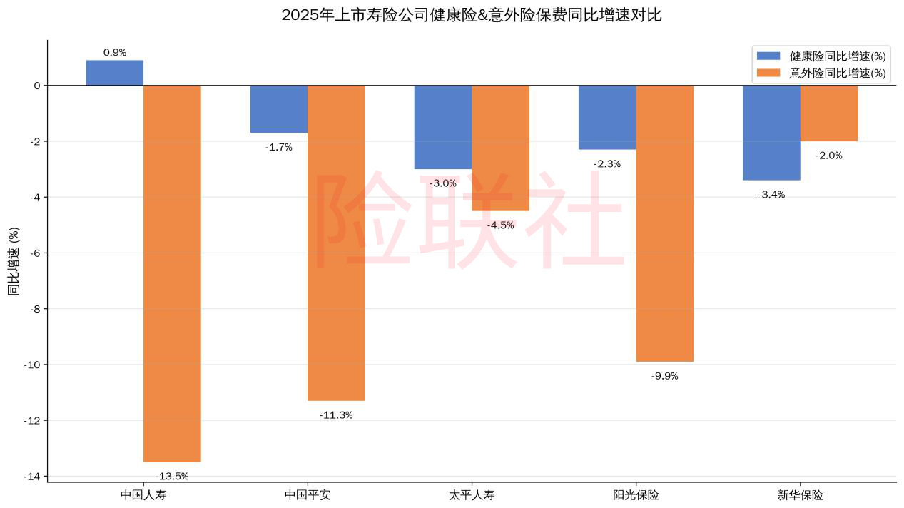 中国人寿作为行业龙头,2025年健康险保费收入1202.21亿元,同比仅增长0.9%,增速远低于总保费8.7%的水平,意外险保费更是同比下降13.5%,下滑幅度远超行业平均。