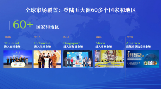 国际化是伊利品牌建设的第四个维度。目前,伊利产品已登陆五大洲60多个国家和地区。