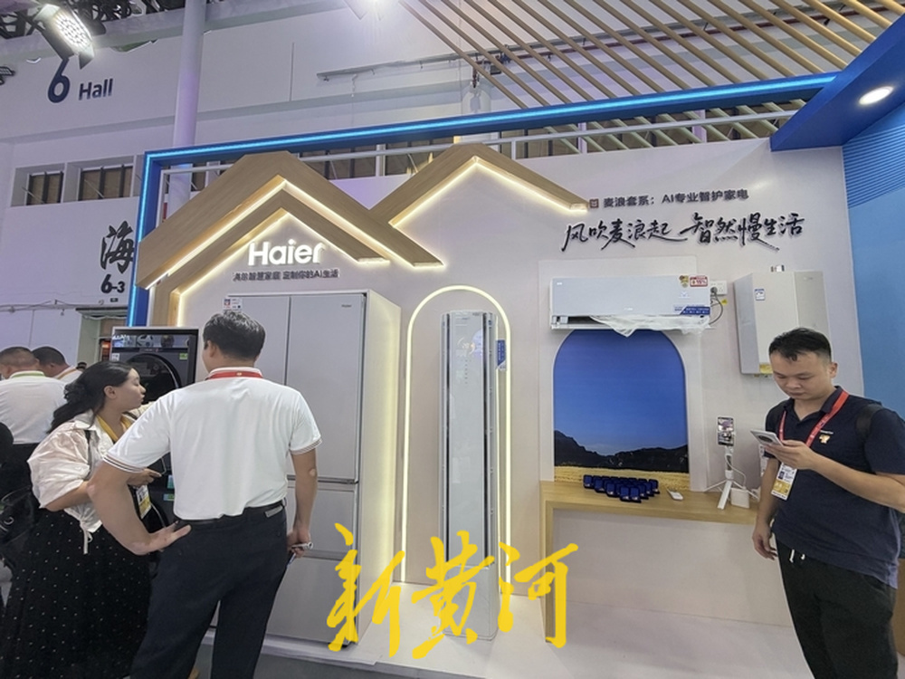 在海尔展位前,最直观的变化是“说明书式”的展示明显减少,取而代之的是一整套家庭使用场景。一款“麦浪”系列冰箱前始终围着不少人。