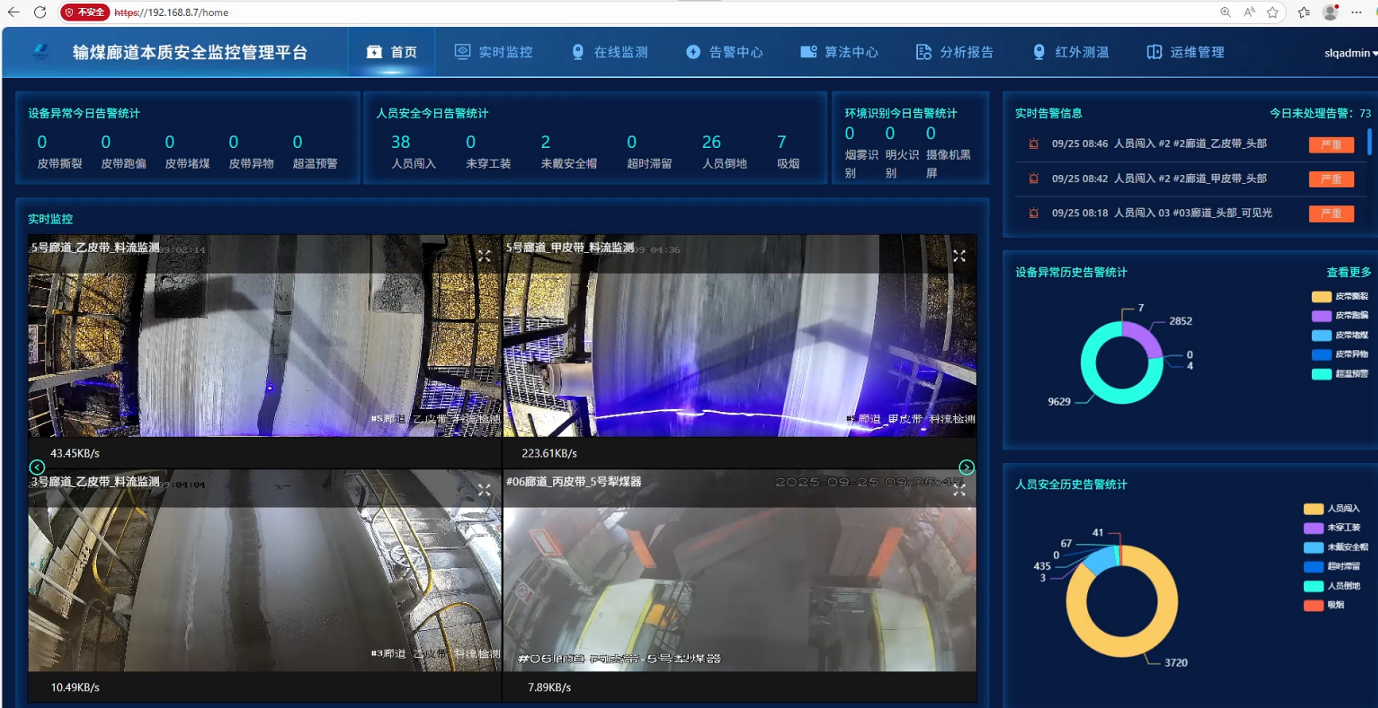 作为火电生产的核心环节,输煤廊道巡检长期面临高粉尘、低光照、强振动的恶劣作业环境,传统人工巡检模式存在效率低、成本高、人为疏漏风险大等痛点,难以满足现代电力系统安全稳定运行的高要求。为破解这一行业难题,华电国际电力股份有限公司某电厂联合吉泰智能聚焦“数字化转型+智能巡检效能提升”核心需求,历经多轮技术攻关,打造了兼具创新性与实用性的输煤廊道本质安全管理系统。