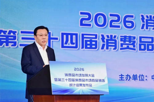 2026 年 4 月 16 日,由中国商业联合会、中华全国商业信息中心主办的2026 消费品市场发展大会暨第三十四届消费品市场商品销售统计结果发布会在北京成功举办。本次大会立足“十五五”开局之年,以“提质内需再启新程”为主题,深入贯彻落实党的二十届四中全会和中央经济工作会议精神,全面解读 2025 年我国消费品市场运行情况,科学前瞻 2026 年市场发展趋势,并权威发布 2025 年度消费品市场商品销售统计结果。大会汇聚行业智慧与各方力量,精准研判新阶段消费趋势与发展机遇,分享创新实践经验,宣介优质标杆品牌,全力赋能商贸流通业与消费品市场高质量发展。