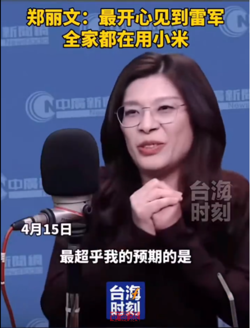 郑丽文的丈夫更是典型的“米粉”(小米的粉丝),她说:“我老公说他全身上下,除了衣服外,全部都是小米的,小米的手机,小米的手环,小米的背包,小米的平板。”