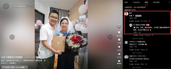 米粉喜提新一代小米SU7:2年前用小米15钻石版求婚成功 雷军送祝福
