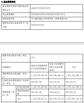 募集期间净认购金额1,972,325,268.16元,认购资金在募集期间产生的利息357,872.42元,募集份额合计1,972,683,140.58份。