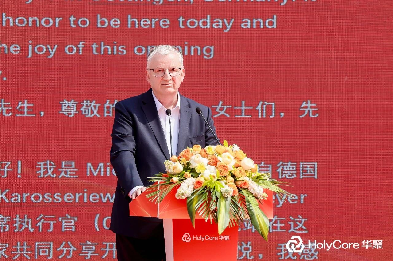 来自德国的Karosseriewerk Heinrich Meyer GmbH首席执行官Mr. Michel Hoell作为海外客户代表,用“惊喜”和“震撼”形容与华聚的合作。他讲述了从2022年在德国展会结缘,到2024年盛夏亲赴杭州、在三周高强度协同中完成方案设计的经历。“那是一个酷热的夏天,但华聚员工的敬业精神甚至比我们德国同事还要勤奋!”他赞叹道,首批交付的产品品质在德国市场前所未见。Mr. Michel还将2026年“马年”比作“能量、速度与开拓精神”的象征,祝福华聚如骏马奔腾,再创辉煌。