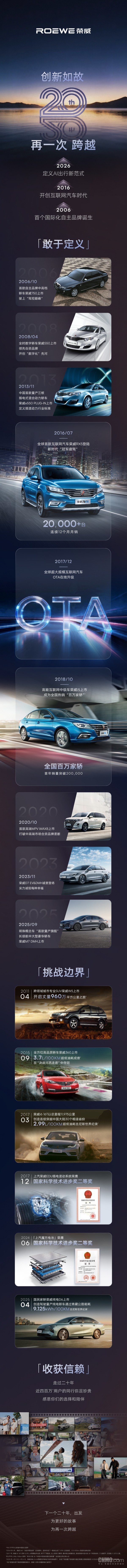 【CNMO科技消息】近日,上汽集团旗下豪华汽车品牌荣威,回顾了品牌20年来的辉煌成就。