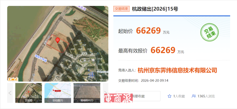 有消息称,杭州钱江世纪城核心区一宗沿江商业用地,被京东旗下杭州京东霁纬信息技术有限公司以6.63亿元拿下。
