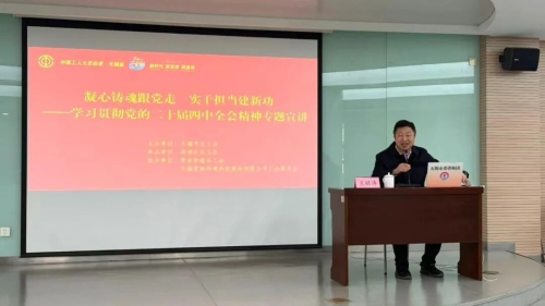 党的二十届四中全会胜利闭幕后,无锡市总工会迅速行动,面向全市职工开展形式多样、内容丰富的学习宣贯活动,推动全会精神进企业、进车间、进班组,凝聚起广大职工建功新时代的磅礴力量。