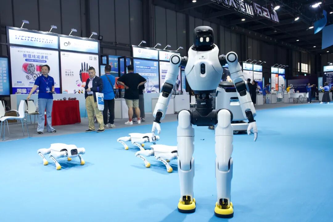 机器狗“连翻跟头”,机器人“舞步轻盈”。在具身智能机器人展区,三只灵动自如的机器狗与一台人形机器人成为全场焦点,吸引众多市民驻足围观、拍照记录。它们不仅能打滚、撒娇,还能完成整齐划一的群体动作。