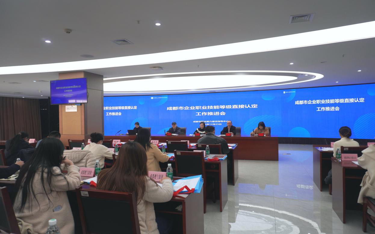 为深化技能人才评价机制改革, 落实大规模职业技能提升行动部署, 2025年12月25日,成都市企业职业技能等级直接认定工作推进会顺利召开。 会议围绕政策解读、业务指导与经验交流展开,着力推动企业规范、高效、自主开展技能人才评价工作。 来自轨道交通、电子信息、环境投资、能源发展、互联网科技等领域的12家重点企业代表参加了会议。