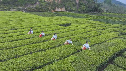 揭东区充分发挥现代农业产业园区的引领带动作用,推动现代化农业集群提质发展。图为新亨镇五房村炒茶种植区。