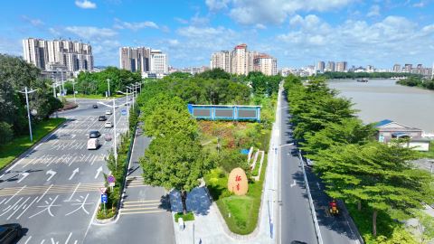 揭东区持续深化人居环境整治与风貌提升,优化城市结构、提升功能品质。图为改造提升后的滨江路西入口。