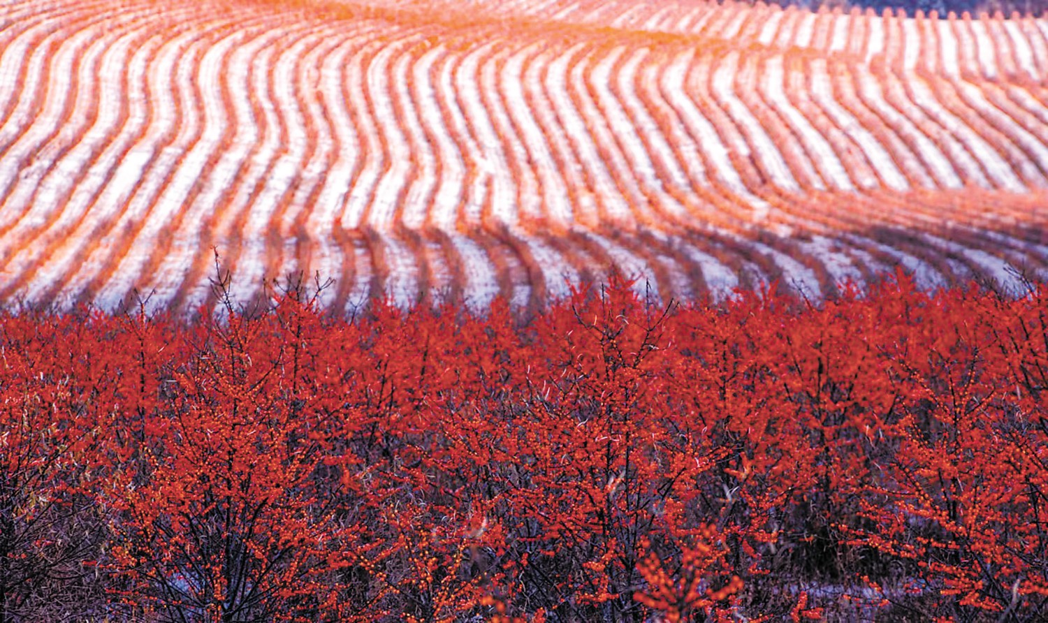 茫茫雪原上,阿尔山森工公司近7万亩沙棘林迎来采收季,连片的沙棘林呈现出鲜艳的橘红色,在冰天雪地里格外醒目。