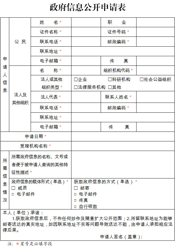 附件:政府信息公开申请表