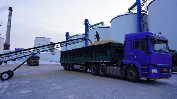 连日来,在北大荒农业股份庆丰分公司粮食仓储中心院内,金黄色的粮食装满了粮仓,一辆辆货车有序装载、整装发运,将前期安全收储的粮食精准送达目的地。