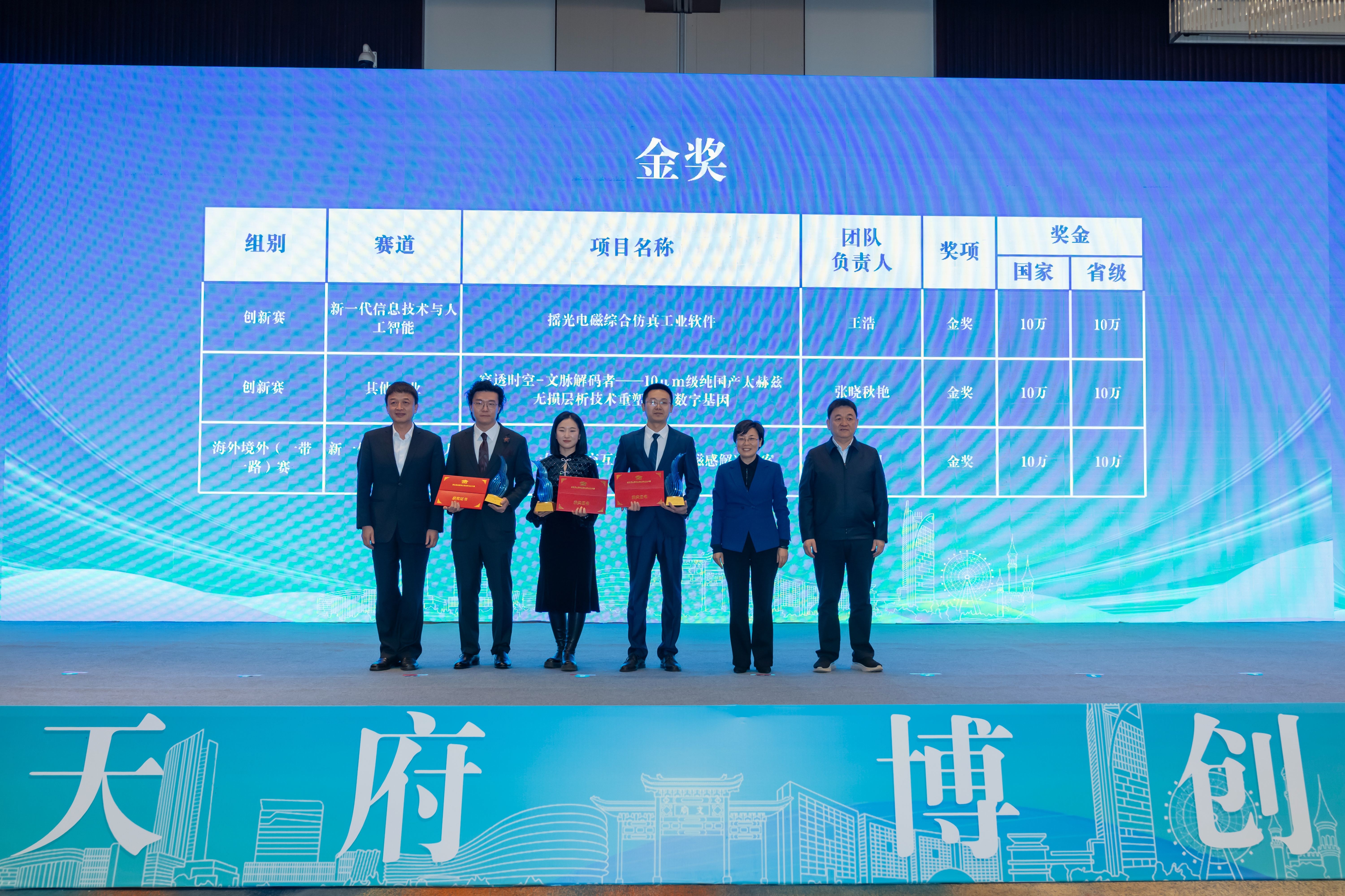 活动以“回顾·展示·链接·转化”为主线,分工作推进和项目推介两个阶段进行。在工作推进会上,电子科技大学、成都市人力资源和社会保障局和博士后合作导师代表进行交流发言。会议通报表扬了第三届全国博士后创新创业大赛组织工作突出单位,并为获奖项目颁奖。获得金奖的“摇光电磁综合仿真工业软件”项目和获得银奖的“擘海氢蓝-海水无淡化原位直接电解制氢”项目分别进行了现场路演展示。四川大学、天府绛溪实验室、泸州老窖集团有限公司等10家单位与博士(后)代表进行了入站(职)现场签约。