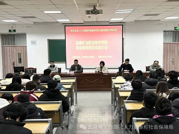为深入贯彻落实人社部“职引未来——2025年全国人力资源市场高校毕业生就业服务专项行动”工作部署,推动人力资源服务精准对接校园需求,助力毕业生高质量充分就业,2026年1月7日,白银区人社局与白银矿冶职业技术学院成功举办“职引未来 暖心送岗”校园就业指导暨重点企业宣介会,通过送指导、送岗位、送政策,为毕业生打开一扇连接职场的“暖心之窗”。