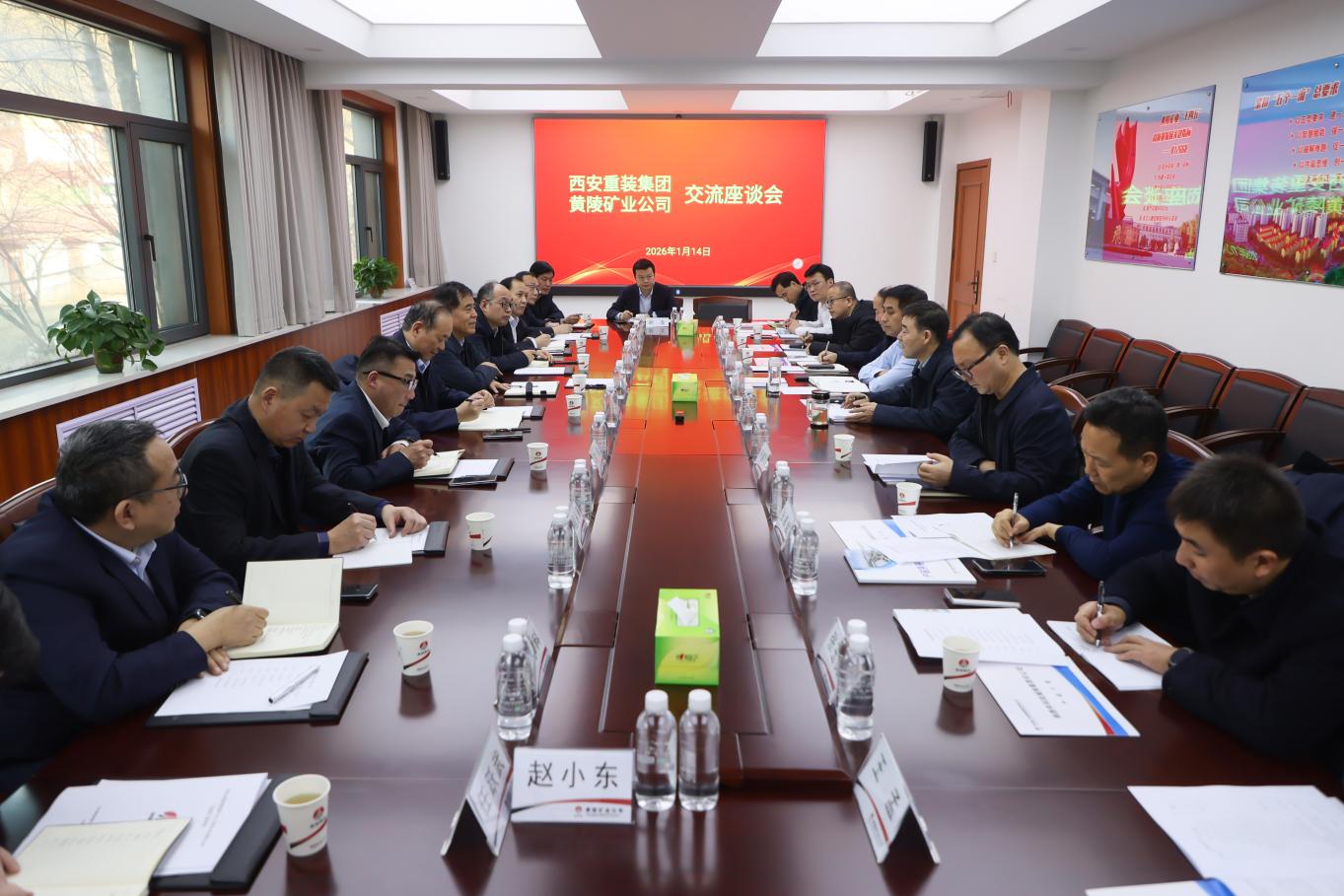 1月14日,西安重装集团党委书记、董事长杨会武,党委副书记、董事、总经理张碧英,副总经理苏乐一行到公司交流座谈。公司党委书记、董事长王鹏飞,副总经理薛国华,相关部门负责人参加座谈会。