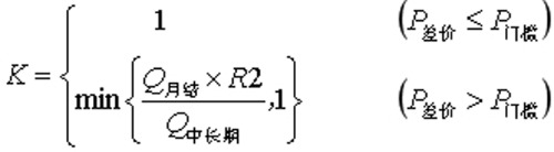 K为折算系数,现阶段K值取1;如一定时期内山东电力中长期市场与现货市场价格未实现有效收敛,K值按照以下方式计算: