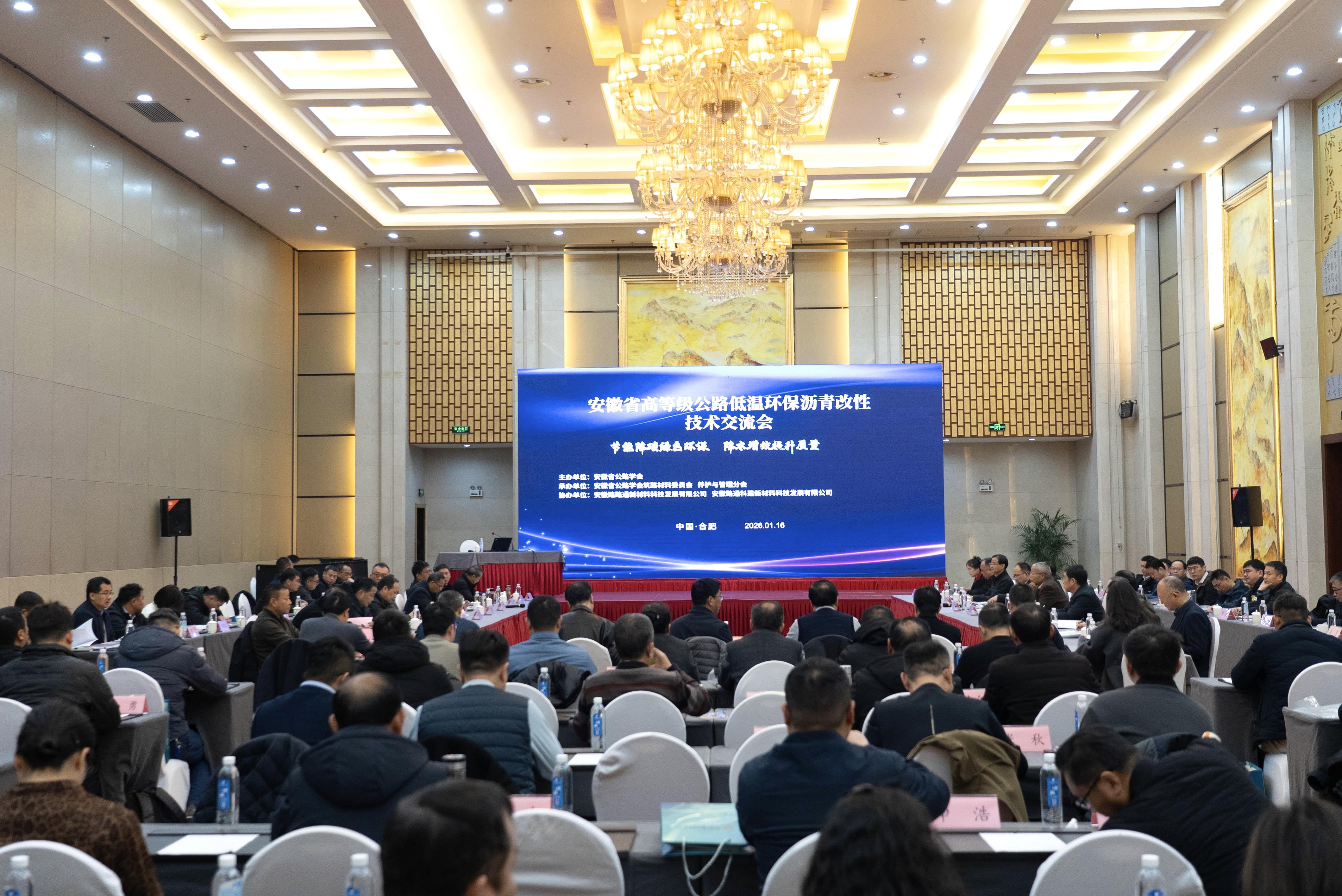 1月16日,安徽省高等级公路低温环保沥青改性技术交流会在合肥举行。此次技术交流会由安徽省公路学会主办,专家学者、企业代表齐聚一堂,探讨高等级公路低温改性环保沥青技术的创新应用与发展路径,共谋绿色交通背景下该技术的应用方向与发展机遇,以科技创新赋能交通新质生产力发展,力争让每一条公路都成为生态路、惠民路、发展路。