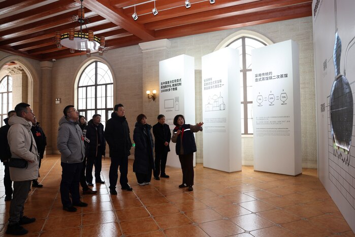 视察首站来到被誉为“中国白兰地第一庄”的张裕可雅酒庄,酒庄独特的城堡式建筑与冬日飞雪相映成趣。中国首位白兰地酿酒大师、大国工匠张葆春全程讲解,带领大家深入酒庄核心区域,娓娓道来白兰地的百年传奇与酿造奥秘。