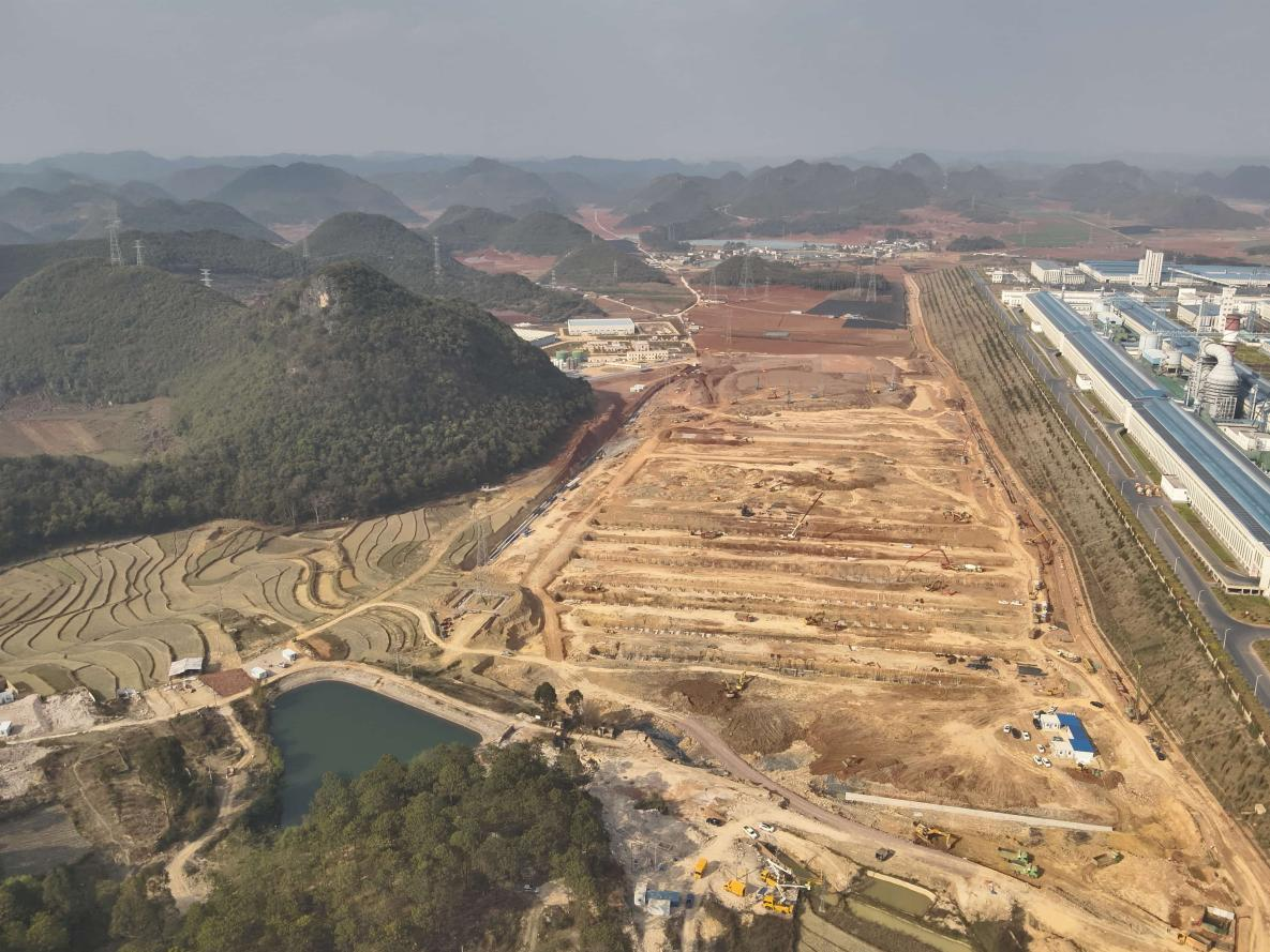 位于砚山产业园的云南文都新材料有限公司一期30万吨预培阳极项目施工现场