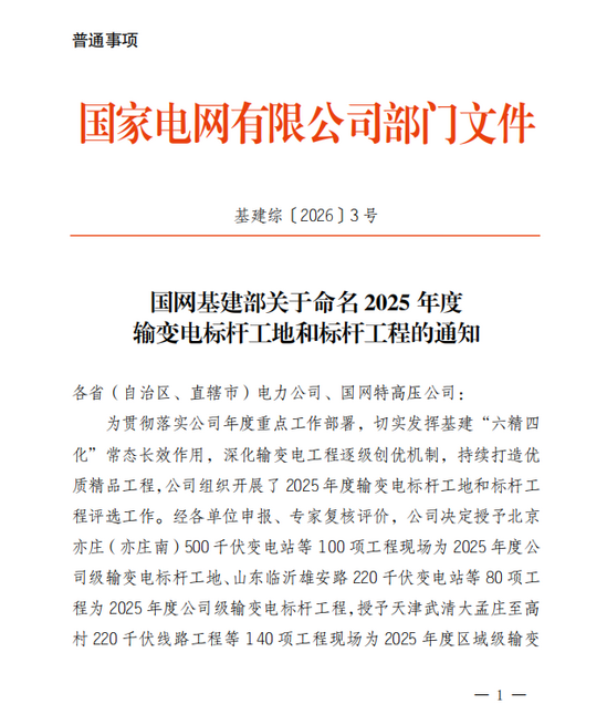 近日,国家电网有限公司正式公布2025年度输变电标杆工地评选结果,山西忻州北到平城500千伏线路工程凭借规范的前期策划、科学的施工管控、卓越的工程质量成功上榜,成为国网系统内输变电工程建设的示范标杆。