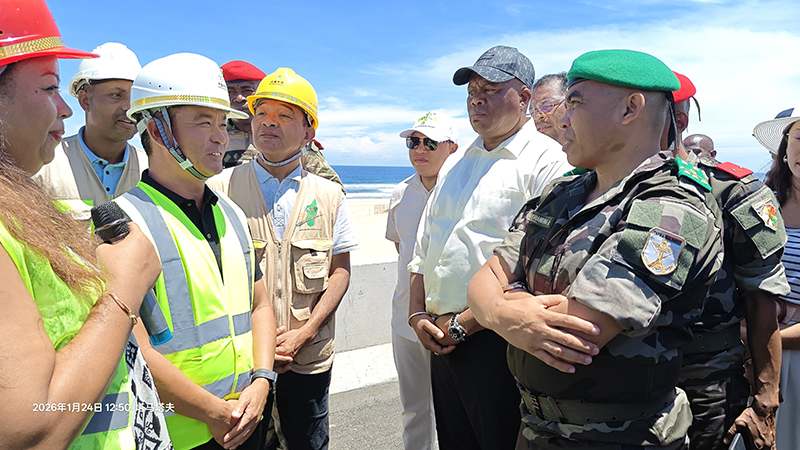 当地时间1月24日,马达加斯加总统米夏埃尔·兰德里亚尼里纳视察了中国电建承建的图阿马西纳港口快速路项目。中国电建马达加斯加代表处负责人陪同。