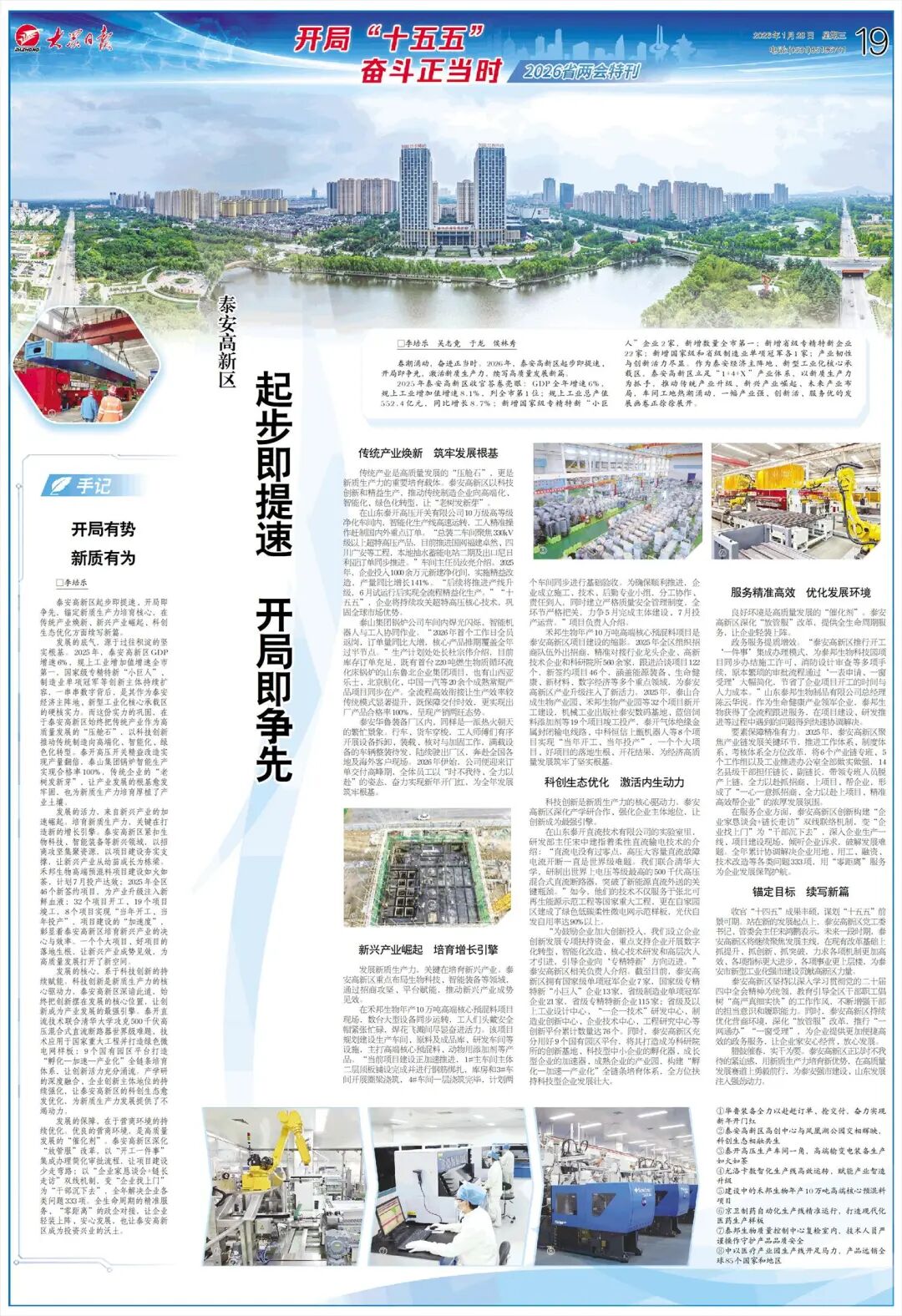 泰安高新技术产业开发区媒体看高新《大众日报》要闻版刊发高新区起步即提速开局即争先