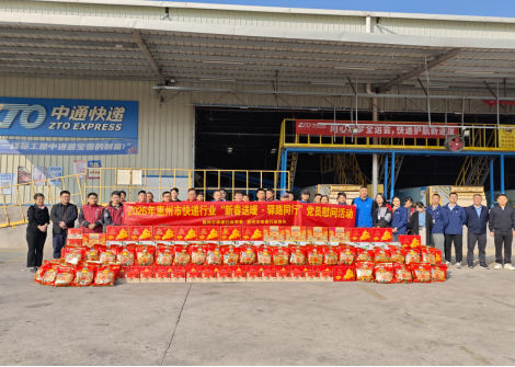 ( 2026年1月28日,惠州市邮政快递行业党委联合市快递行业协会在惠城区中通快递分拨中心举办2026年惠州市快递行业“新春送暖·驿路同行”党员慰问活动)